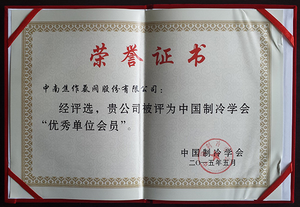 2015年5月28日,中國(guó)制冷學(xué)會(huì)單位(團(tuán)體)會(huì)員大會(huì)在江蘇常州召開,中南焦作氨閥股份有限公司2015年以良好的企業(yè)形象和的產(chǎn)品質(zhì)量,受到中國(guó)制冷學(xué)會(huì)和業(yè)內(nèi)廣大合作伙伴的好評(píng),被評(píng)為中國(guó)制冷學(xué)會(huì)2015年度會(huì)員單位。