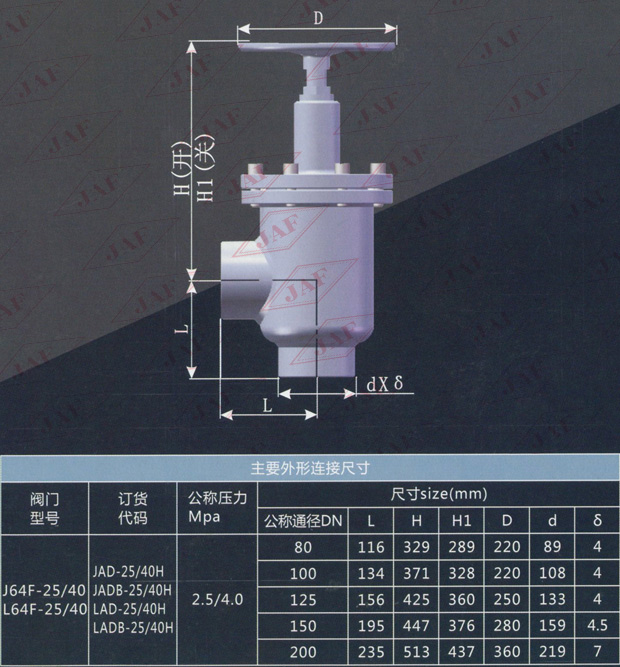 對焊直角截止閥J64F-25(40) 對焊直角節(jié)流閥L64F-25(40)