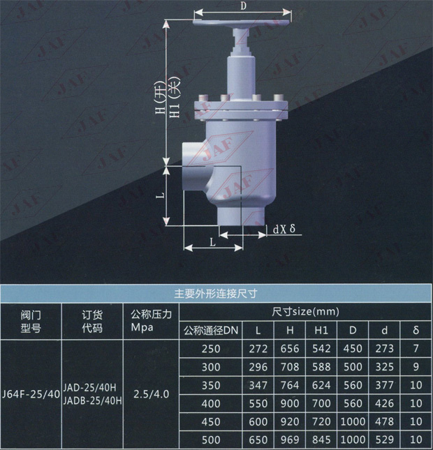 適用于公稱壓力為2.5/4.OMPa、公稱通徑為DN250~DN500閥體材料為鋼質(zhì)焊接的對(duì)焊直角截止閥。